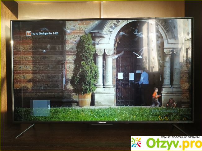 Телевизор производится в Калининградской области в городе Черняховск. В коробке находилось: телевизор Hamber 49HRP6508, подставка с крепежными элементами, руководство по эксплуатации, переходник под «тюльпаны», пульт управления с элементами питания. Внешний вид телевизора очень привлекательный. Тонкая рамка вокруг экрана. На задней стенке имеются разъемы: RJ45-для подключения сети интернет, VGA-вход видеосигнала ПК, VGA AUDIO IN-вход аудио сигнала ПК, SCART-видео/аудио вход/выход, HDMI-цифровые входы видео/аудио, ANT-ТВ антенный вход, COAXSIAL-цифровой выход аудио, PCMCI-слот для САМ- модуля, AV IN-аналоговый вход видео и аудио, Y/Pb/Pr-компонентный вход видео, USB2.0, разъем для наушников. С правой стороны имеются кнопки управления: ROWER- вкл. /выкл. телевизора, MENU-вывод на экран ТВ меню, CH+/ CH- переход к последующему/предыдущему каналу, для навигации по меню, VOL+ VOL- увеличение/уменьшение уровня громкости. С лицевой части имеется индикатор включения/ждущего режима, приемник команд ИК- пульта управления. Габаритные размеры 1099х80х634 мм.