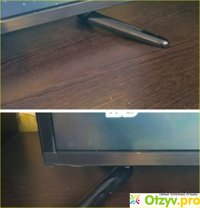 В комплект поставки вместе с телевизором входил пульт дистанционного управления, батарейки формата ААА, подставки для телевизора, руководство по эксплуатации и комплект крепёжных элементов. Телевизор был надёжно установлен в коробку с пенопластовыми заглушками. Пластиковые ножки были аккуратно обернуты целлофаном. К нему прилагались винты и резиновые шайбы-уплотнители, чтобы не скользил по поверхности стола. Подножки необычной формы, напоминают бумеранг, стоит он на них очень уверенно и крепко. При желании его можно разместить на кронштейне, благо весит он всего 4 кг. Кронштейн нужен стандартный, VESA 100 на 100 мм.