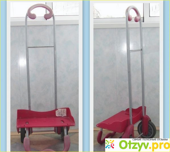 Дизайн самый современный. Не побоюсь этого слова, тележка вполне женственная. Ярко - красный тон и красивые розовые изгибы в пластиковых конструкциях делают эту тележку очень привлекательной. Она не выглядит отталкивающе и жалко. Это вполне современный дизайн, навевающий мысли скорее о путешествиях, а никак не о тяжелой доли одинокой бабульки.
