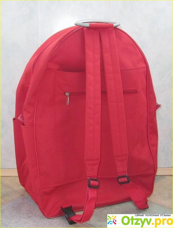 Для меня приятным бонусом явилось то, что сумка, снятая с подставки, оказалась совершенно самостоятельным предметом. Это рюкзак. Прекрасно смотрится, легко моется. Имеет две широкие лямки, которые не режут плечи и смотрится этот рюкзачок вполне стильно, ничем не напоминая, что это часть от сумки. Он объёмный, снабжён замками - молниями, также есть отдел внешний ( для ключей и телефона), словом, отличная вещь и очень вместительная.