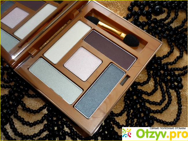 Изысканный футляр или палетка с наличием прекрасных кофейных, голубоватых, тона какао. Имеется двухсторонний практичный аппликатор для нанесения, а также порой столь необходимое зеркальце, чтобы всегда была хорошая возможность подправить макияж в самый подходящий момент времени.