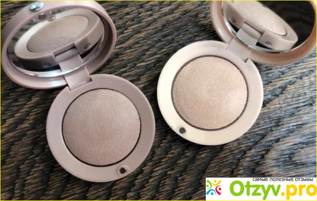 Двойку использую в качестве хайлайтера в уголок глаза. Эффект красивый, пигмент при растушевке дает едва заметный натуральный розовый блеск, хорошо сливается с кожей, не различишь.