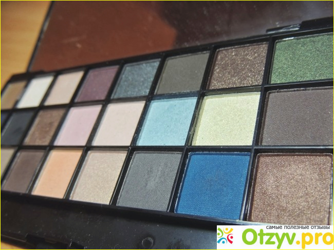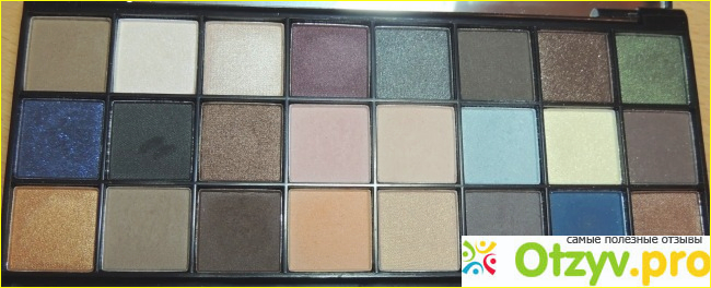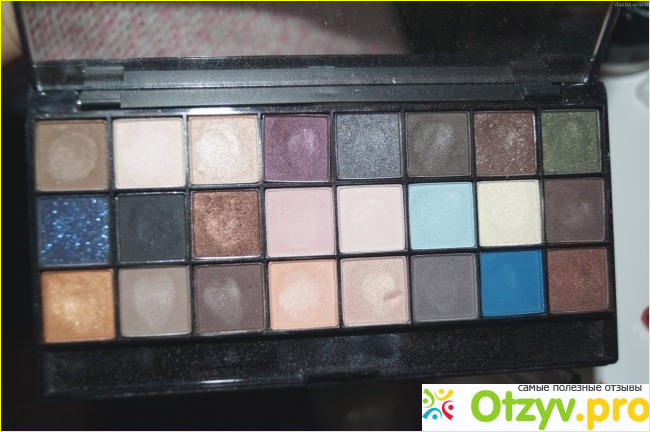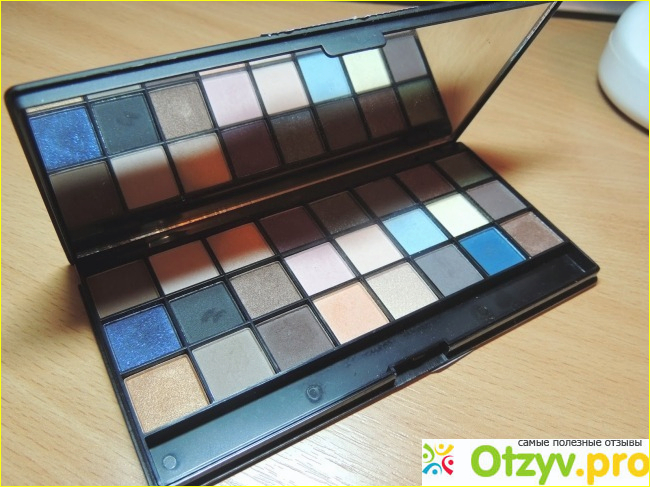 Сама палетка выполнена в черном цвете. Причем мне очень понравилось какая она приятная на ощупь. Сверху на крышке от палетке написано ее название, а так же название ее торговой марки. Внутри же у нее находится с одной стороны просто огромное зеркало, но лично я им никогда не пользуюсь. Так как предпочитаю делать макияж все же у большого зеркала.