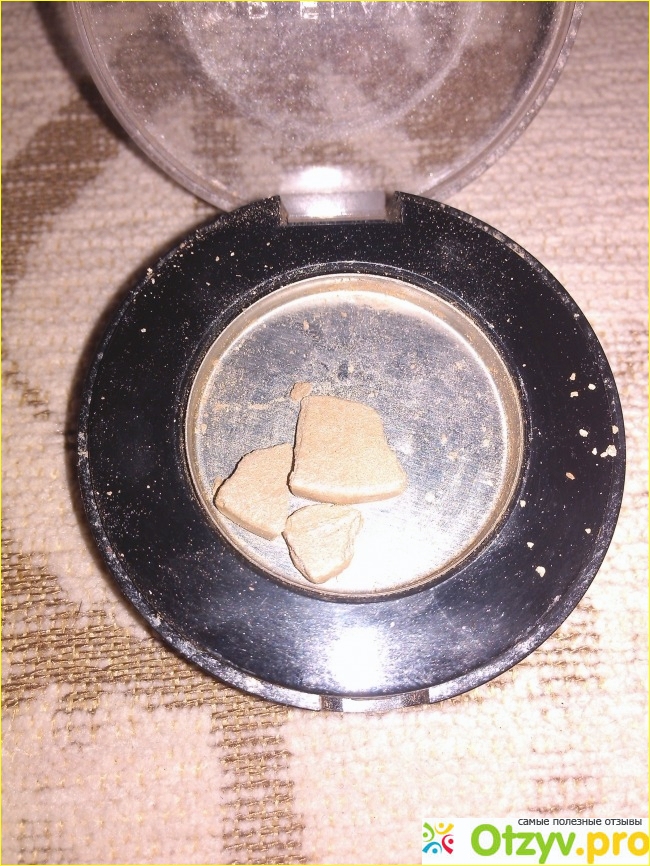 Сами тени в коробочке имеют тоже круглую форму, как и коробочка. Оттенок у теней очень приятный, натуральный и они красиво переливаются. Тени очень мягкие на ощупь, хорошо берутся аппликатором, да даже просто пальцами, наносить их очень приятно, так как они хорошо ложатся на кожу век.