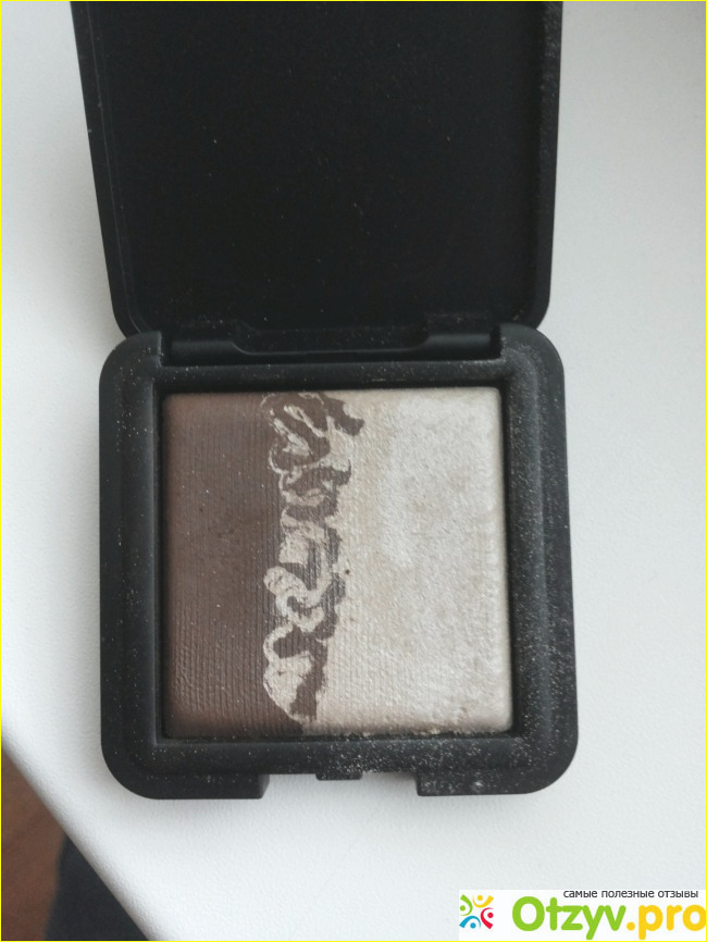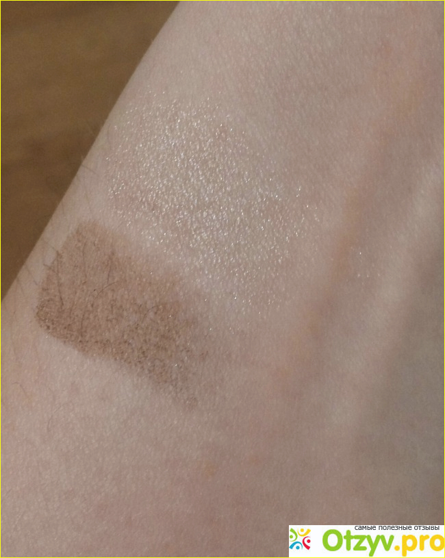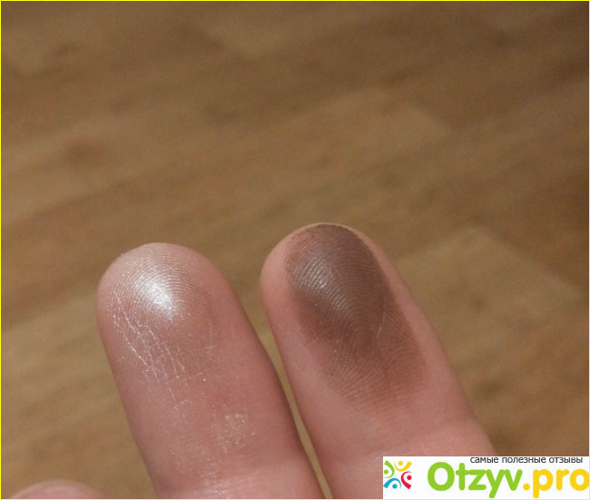 Что касается пигментации, то темные тени очень пигментированные. Они легко наносятся, на коже сразу виден цвет, растушёвываются тени легко. Что касается светлого оттенка, то блеск он даёт весьма заметный, но цвет смотрится не очень насыщенно, и со временем он как-то съедается на глазах. Тени можно наслаивать. И наносила я данный продукт с помощью кистей. Очень понравилось, что при наборе на кисточку тени не сыплются и не пылят. Хотя сами по себе они очень мягкие. Например, тёмным оттенком сделать стрелочку у меня не получалось, поскольку нужно было очень много слоёв наносить, и всё равно это выглядело слишком блёкло.