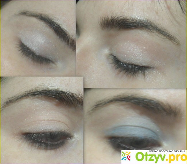 Видите, даже по текстуре заметно, что тени немного крошатся, они неровные, при наборе на кисть или спонж это еще виднее. Теперь покажу, как на веках лежат.