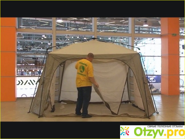Громадный тент шатер с телескопическими дугами, отлично уместит в сардине до 10 человек, благодаря высоте этого тента в середине можно стоять во весь рост, даже самым высоким людям. Тент имеет четыре входа с разных сторон. Металлическая конструкция очень прочная, тент уверенно стоит даже при самых сильных потоках ветра, вы можете не переживать что ваша палатка будет летать по всему дачному участку или лесопосадке, конструкция тента очень прочая. Покрытие Тент-шатер Greenell «Таерк», защищает прочно от ультрафиолетовых лучей, каждая сторона прочно укрыта москитной сетью, каждый шов качественно пришит и проклеен, в такой палатке вам не страшны ни какие дожди, единственно, что после намокания палатку нужно хорошо просушить в открытом виде, дабы избежать опрелости и грибковые поражения ткани. В тенте есть все необходимое, специальные петли для фонарика, пристёгивающиеся боковики, которые помогут скрыть москитную сетку и сделать палатку полностью закрытой. Тент-шатер Greenell «Таерк» замечательно подойдет для любого вида отдыха, его очень просто транспортировать и собирать двое мужчин поставят его за 15-20 минут, в комплекте идет удобная сумка переноска, для всех деталей. Купили этот тент через интернет, нашли его в одном из магазинов, но цена была сильно накручена, в интернете оказалось гораздо дешевле. Обошелся тент в 21000 тысячу рублей, правда через неделю на этом сайте была еще, и скидка так что можно было еще сэкономить 2000 рублей. Так что ищите выгоднее для вас варианты.