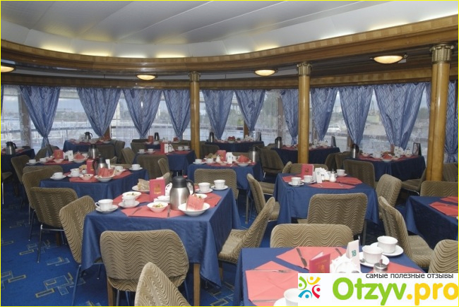Для туристов организовано трехразовое питание с выбором по меню в двух ресторанах, расположенных на шлюпочной и главной палубах в носовой части судна. Питание включено в стоимость путевки.