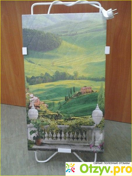 Этот обогреватель выполняется в нескольких вариантах, с вилкой и без неё, прикрепляющаяся к стене или на ножках. Как правило по периметру плиты идёт алюминиевая рамка, в которую влит состав белого цвета. Это модульная система, которая может использоваться абсолютно в любых помещениях. Цена одного такого обогревателя в месте с терморегулятором составляет примерно 4 000 рублей.