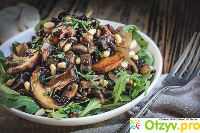 Теплый салат из чечевицы с грибами и фасолью |
