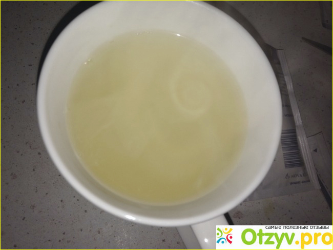 Порошочек залили горячей водой и он растворился моментально. Напиток желтого цвета и довольно таки кислый.