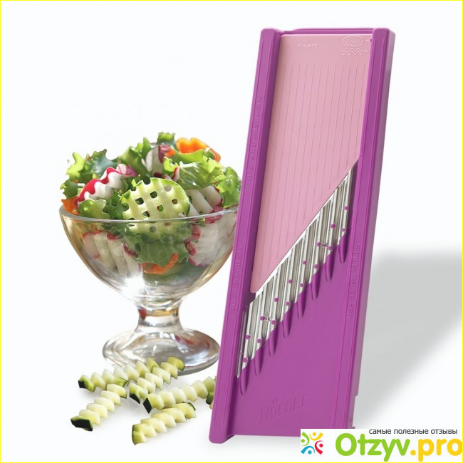 Основной плюс этой терки в том, что она без металлических ножиков. Приглядитесь на фото ниже. И так как она без металла, то овощи и не прилипают и не киснут.