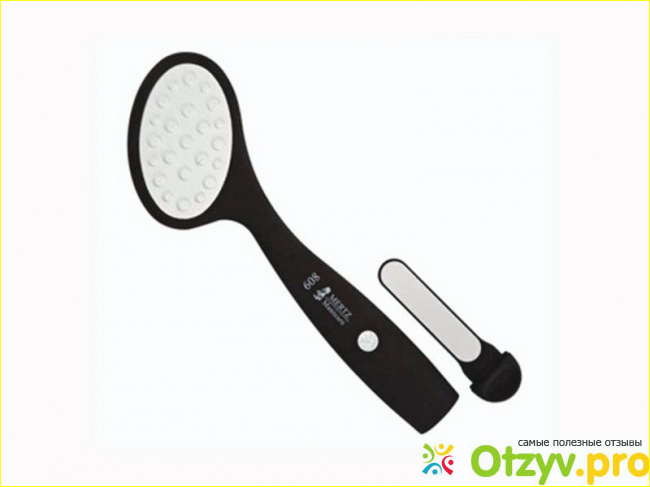 Сама лазерная терка Mertz выглядит довольно необычно. Так как по своей форме она совершенно не похожа на те терки, которыми мы привыкли пользоваться. У этой терки сама рабочая поверхность довольно большая и имеет она овальную форму. Причем у данной модели терки есть две рабочие стороны и еще она дополнительно лазерная терка в виде пилочки спрятана в ее ручке.
