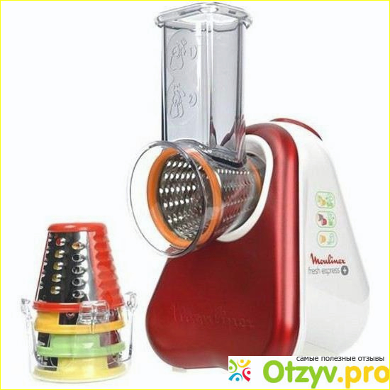 Moulinex позаботилась о своих обывателя, поэтому качество данные тёрки отменное, компания Moulinex известно по всему миру они выпускают различную технику, которая всегда отличаются качеством и современностью, а также своим необычным, красивым дизайном, что касается электро терки Мулинекс, то этот прибор состоит из основного корпуса, для насадок, каждая деталь в нём продумано конечно же до мельчайших подробностей , внутри такой терке конечно же электродвигатель, от сети она работает, сверху крышка на которой имеется кнопка при помощи которой вы сможете запустить прибор, а также его остановить, также камера для подачи продуктов со съемным толкателем, сбоку корпус укрепиться емкость, которая служит хранилищем для насадок. Как видите всё очень компактно просто, а главное очень качественно и быстро вы получите готовый результат, для того чтобы начать работу на такой терке необходимо установить насадку которая вам понадобится в той или иной ситуации для определенного продукта, потом просто нажать кнопку с помощью толкателя просунуть продукт и всё машинка далее всё сделает для за вас!!!))
