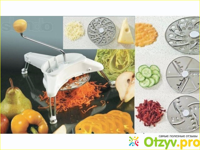 С помощью такой терки вам на кухне будет готовить одно удовольствие. Изготовлена она из очень прочного пластика. У нее есть удобная ручка держатель.