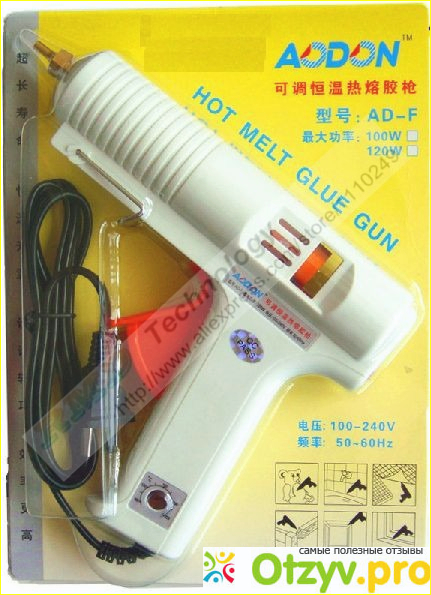 На первых порах мы пользовались обычным термо-клеем синего цвета, достаточно маленький и удобный. Но он быстро ломался и не приходил в пригодность. Этому соответсвовала цена - 150 рублей. Недавно находясь в поисках нового приспособления на сайте алиэкспресс мы нашли новое устройство термо клея, сложно его назвать, но по изображениям ниже можно будет легко его найти.
