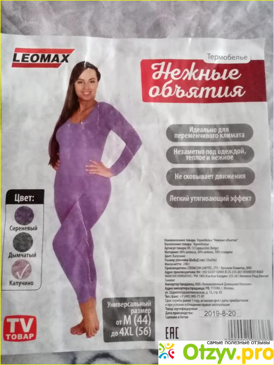 На упаковке указано, что бельё имеет лёгкий утягивающий эффект. Но я не могу сказать что этот эффект лёгкий: штаны практически похожи на колготки – настолько плотно они сидят на ногах. Верхняя часть – пуловер – тоже очень сложно надевается.