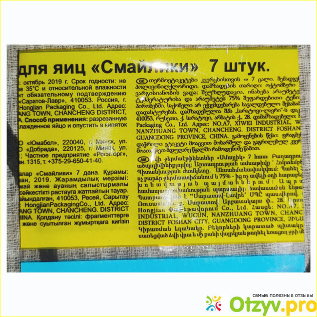 Целован сжимается и принимает форму яйца. Но очень крупные яйца они не налезут. Так же проблема с очень маленькими. Они просто могут соскользнуть и превратиться в комок полиэтилена. В этот раз нам повезло, не потеряна ни одна их этикеток. Даже информационную надели и назвали яйцо "начальником".