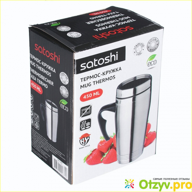 Считаю, что вакуумная термокружка SATOSHI это хорошее приобретение по хорошей цене. По сути у нее из минусов только: маркая поверхность и сомнительной надежности уплотнитель на крышке. В остальном она хороша: красивый дизайн, большой объем, подходит к подстаканникам в машине.