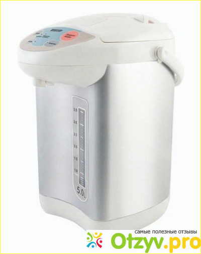 На передней части корпуса расположена шкала объема, которая позволяет видеть уровень воды в термопоте.