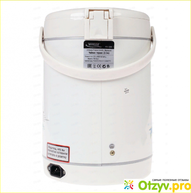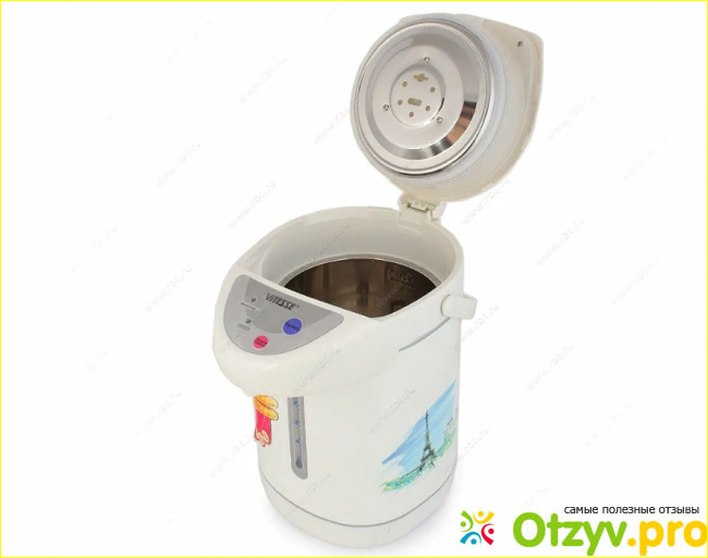 Прежде всего необходимо определиться, что собой представляет термопот Vitesse VS-123 и из чего состоят его комплектующие. Это оригинальное устройство, сочетающее в себе электрический чайник и термос.
