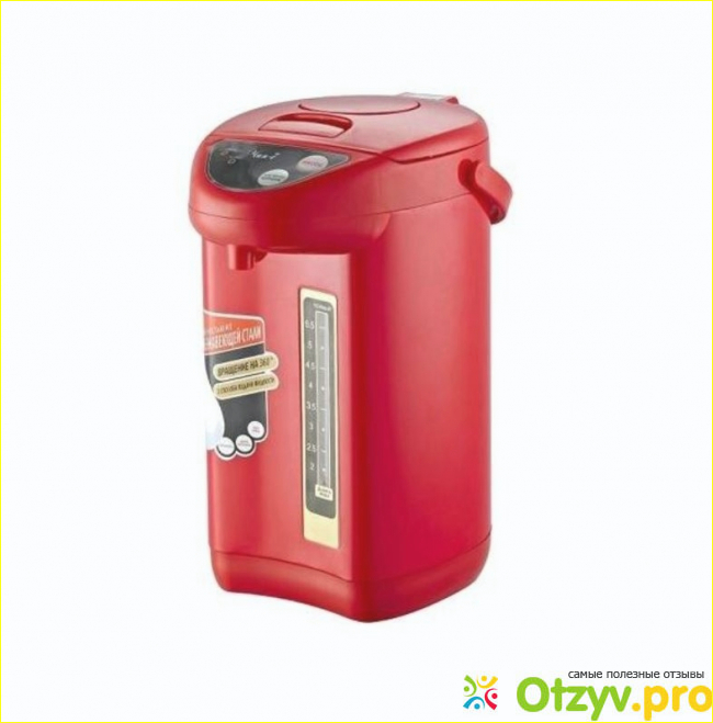 Термопот является действительно полезным прибором, особенно, если у вас большая семья, а еще больше он пригодится, когда есть маленькие дети. Мы купили такой прибор, когда ждали второго ребенка, раньше просто не слышали о его существовании. В нашей местности, особенно с приходом холодов, любят регулярно выключать свет, и тогда возникает действительно большая проблема, когда остаешься с маленькими детьми дома и нет горячей воды, чтобы можно было покормить или дать попить ребенку. Модель мне понравилась и внешне, смотрится достаточно стильно, корпус изготовлен из металла, а также на приборе стенки двойные. Также порадовал и объем, который составляет четыре литра, этого объема вполне достаточно на целый день. Вода подается при помощи электронасоса, а также можно подавать при помощи ручного насоса, предусмотрена блокировка (прибор не получится включить, если воды в нем осталось совсем мало). Имеется удобная ручка, при помощи которой можно переносить прибор.