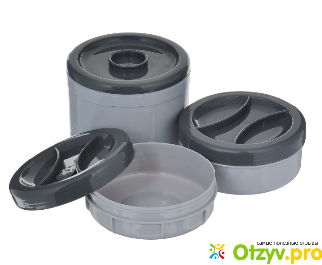 Итак, это пищевой термос, который как я уже говорила в плюсах данной модели, имеет широкое горлышко, сделан из нержавеющей стали и качественного пластика, с двойными стенками и тремя контейнерами.