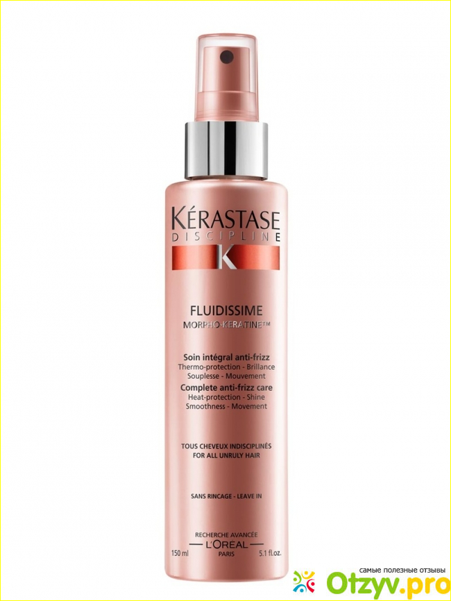 Факон очень удобный и не скользит в руке, распыляет не струей, а достаточно хорошо, по всем волосам. Если учитывать , что у меня очень густые волосы, то мне хватает 5-7 пшиков. Высыхает термозащита на волосах тоже достаточно быстро. Хочу отметить , что в составе имеется спирт, но запаха спирта я не почувствовала и волосы мне не сушило. И ещё - после него очень быстро пачкается плойка, после каждого применения надо мыть. А вот и сама термозащита -