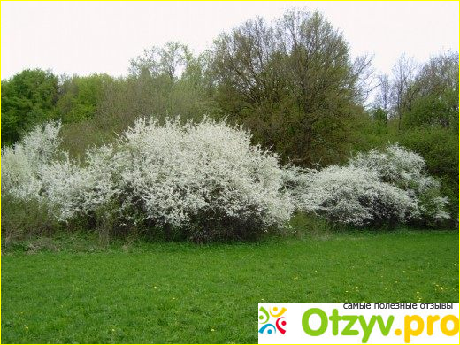 Этот цветет терн. Зацветает он еще до появления листочков, и цветы так густо облепливают ветку, что полностью покрывает густые заросли терновника.