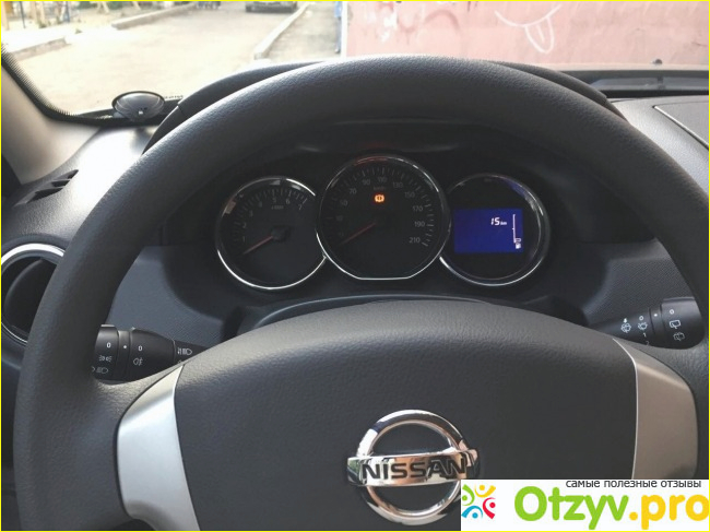 Центральная консоль в сравнении с Альмеой и Дастером однозначно лучше. Все сделано более аккуратно и выглядит по новому. Но есть один момент, который мне не очень понравился это градуировка скорости нечетными значениями. По правилам в основном ограничения скорости в городе 40 и 60, поэтому было бы удобнее если градуировка была в четных показаниях. Еще нет датчика температуры двигателя. Возможно, для новых машин это не сильно актуально, но в некоторых случаях она необходима, чтобы контролировать состояние мотора.