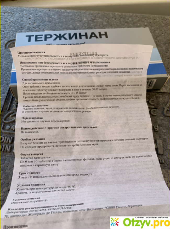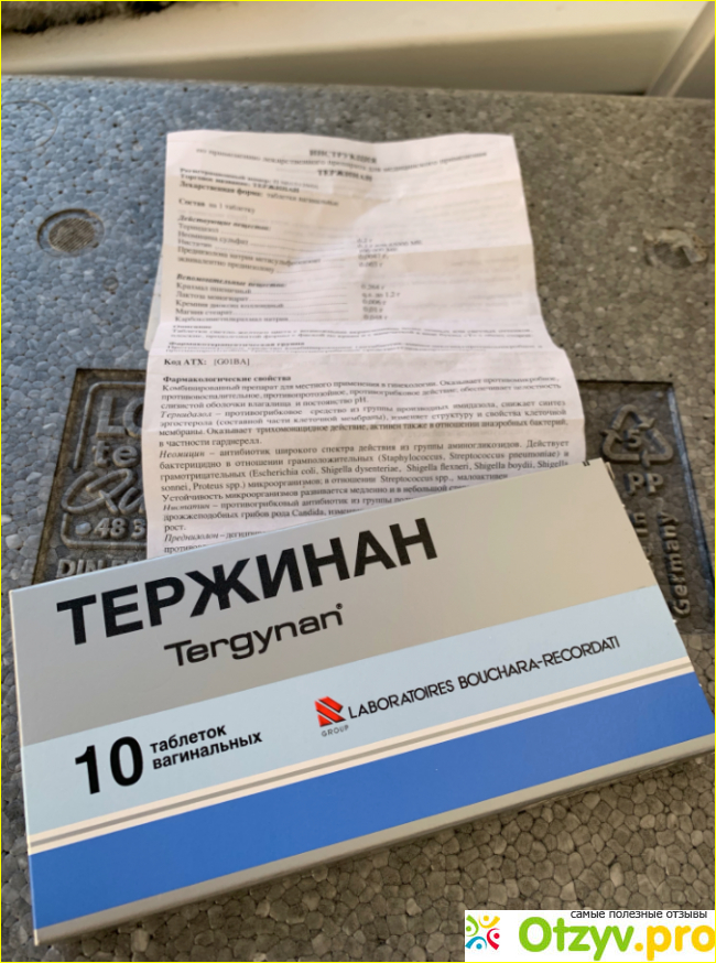 Гинеколог меня осмотрела, подтвердила диагноз вагинита и назначила Тержинан. Его можно кормящим. Главным плюс в том, что это вагинальные таблетки, они действуют во влагалище, не всасываются в кровь, поэтому не влияют на молоко, и на внутренние органы. Я купила упаковку из 10 таблеток за 530 рублей. Есть еще по 6 таблеток, но это для профилактики перед родами. От вагинита нужен полный курс.