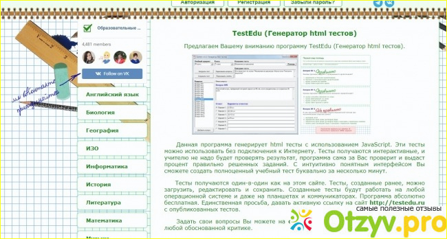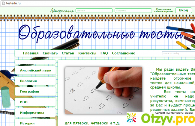 testedu.ru - это проект, где представлены в открытом доступе различные образовательные тесты. На сайте есть тесты по различным предметам для учеников как младшей, так и старшей школы. Ресурс довольно простой, по нему видно, что денег много не вложено. Скорее всего проект был создан простыми энтузиастами. Думаю, такая полезная работа достойна уважения.