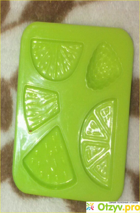 Две большие формы 10*10 см с различными фруктами, в которые закладывается пластилин нужного цвета и выдавливается нужный фрукт, потом обрезается лишнее и готово, десерт для украшения есть.