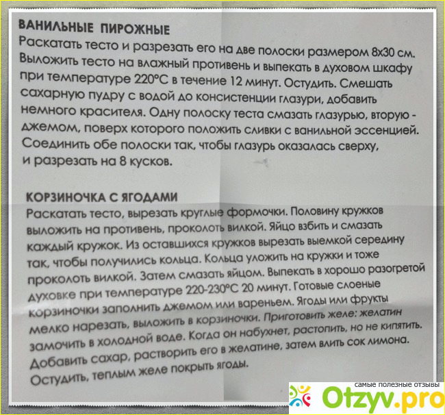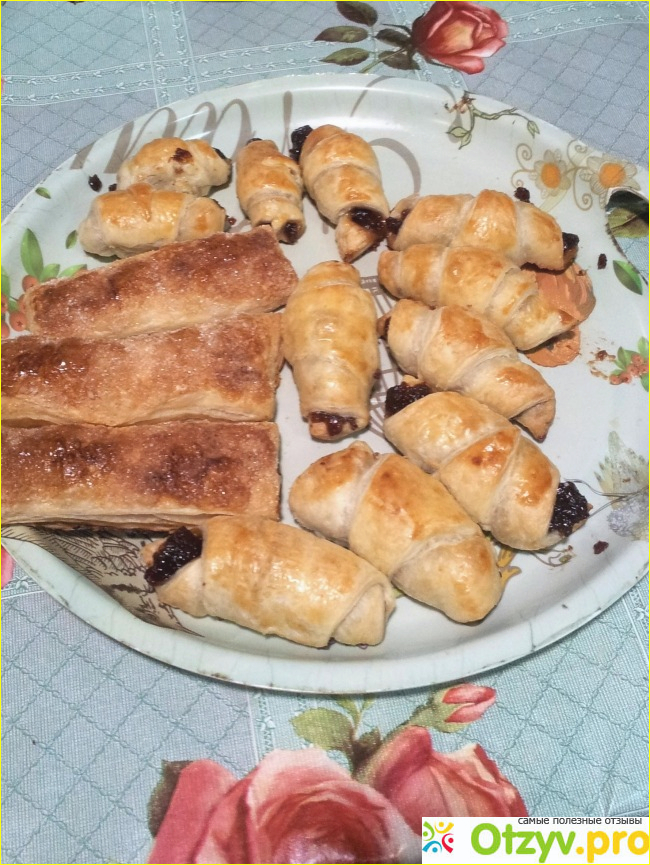 Это слоеное тесто я покупаю очень давно. По своим потребительским качествам оно меня полностью устраивает. Из него я готовлю очень много кондитерских изделий, например это могут быть печенье различные изделия из слоёного теста.