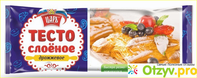 Недавно покупала очень хорошее слоеное дрожжевое тесто от марки "Царь", как всегда готовила очередную вкуснятину. Продается тесто "Царь" в удлиненной упаковке. Очень красочно оформлено, дизайн пачки симпатичный, что конечно прилекает внимание.