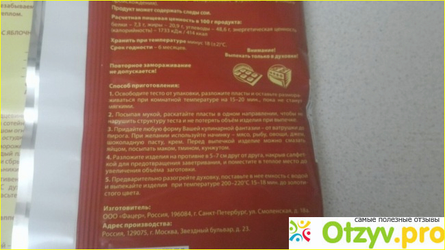 Тесто Звездное очень простое в применении и не требует никаких усилий в его использовании. В первую очередь достаньте его из морозилки, дальше его нужно просто разморозить, затем положить начинку, создать необходимую форму приготовления, и наконец отправить в духовку до образования аппетитной корочки. Дополнят тесто прекрасные рецепты, которые присутствуют на упаковке каждого теста. Поэтому, даже с помощью рецепта на упаковке, получиться приготовить шедевр.