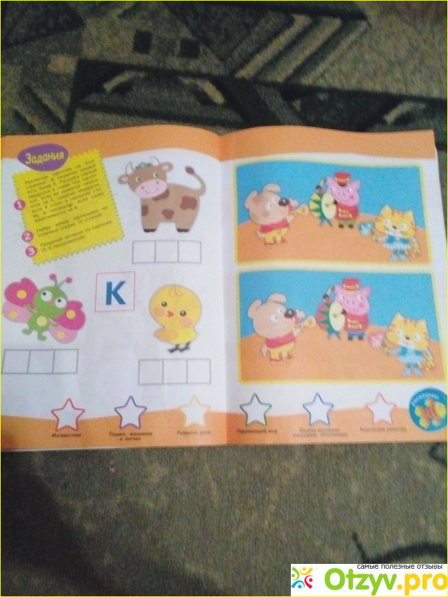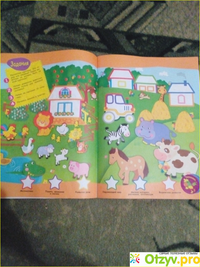 У нас тетрадь для детей 4-5 лет, но есть в этой серии для 2-3 лет, 5-6 лет. Дочка в восторге от этой книге. Много игровых заданий. Понравилось, что есть задания на вырезание, на раскраску. Такие задания нравятся детям, кроме этого они отлично развивают моторику рук, воображение.