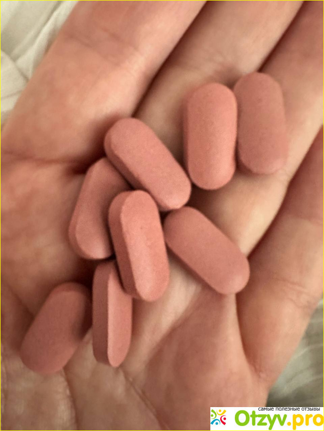 Таблетки продолговатой форме, кирпично-розового цвета. Глотаются легко.