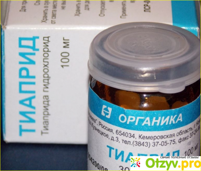 Основным действующее вещество препарата и является одноименный тиаприд (в форме гидрохлорида). Препарат выпускается в упаковках по 20 или 30 таблеток с дозировкой 100 миллиграмм. Также он выпускается в форме раствора для внутримышечного и внутривенного введения. Средство относится к антипсихотическим препаратам, то есть к нейролептикам. Также обладает мягким седативным действием. Выпускается препарат в России. Среди его аналогов можно отметить такой препарат, также российского производства как — «Тиапридал», который выпускается, как в виде таблеток, так и как раствор для внутривенного и внутримышечного введения.
