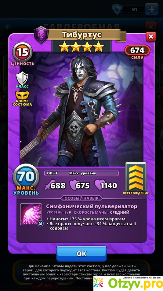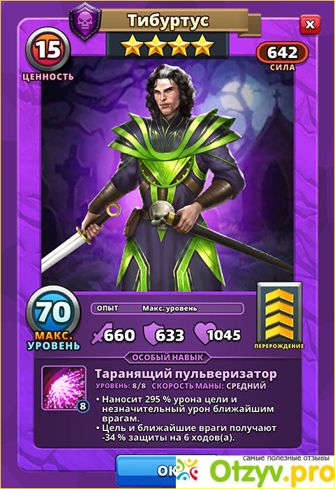 Тибуртус – это регулярный герой тьмы. Естественно встретить в игре его можно часто. На более поздних уровнях героя даже скармливают, если прокачанная версия уже есть в копилке игрока.