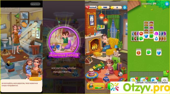 Игра расслабляющая, проигрываю редко. Внешность персонажей нормальная, комнаты даже без ремонта очаровательные. Анимация комнат отличная. звуковое сопровождение приятное, Нравится смех персонажей. Рекламы нет для облегчения геймплея. По сути игра зациклена на донатах-вливаниях реальных денег.