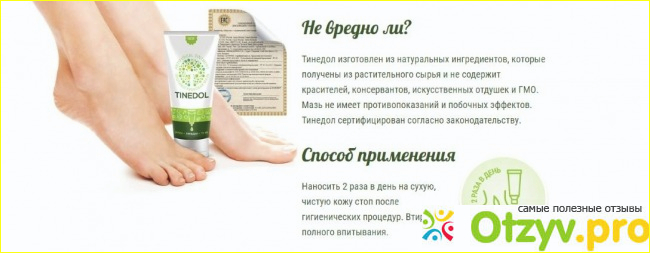 Если брать обычные средства для удаления грибка, то перед их нанесением необходимо кожу хорошо подготавливать. Для этого иногда требуется их распарить, потом нужно потереть пемзой и уже после этого наносить средство. С мазью Тинедол, этого делать не нужно, она сама все сделает - и подготовит кожу, и окажет лечебное действие.