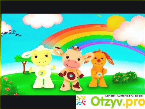 В мультфильме три главных героя - коровка, собачка и овечка, которые поют песенки, танцуют, задают вопросы ребенку и сопровождают вашего малыша на протяжении всего мультфильма. Пусть многим не понравятся главные герои, но не стоит забывать, что прежде всего это мультфильм для деток, а у них свое восприятие и такие персонажи им нравятся. И он рассчитан на деток, которые только всему начинают учиться, только начинают махать ручкой, произносить первые звуки. И для таких самых малышей, такой мультфильм будет настоящей находкой. Это очень добрый мультфильм и герои в нем очень добрые.