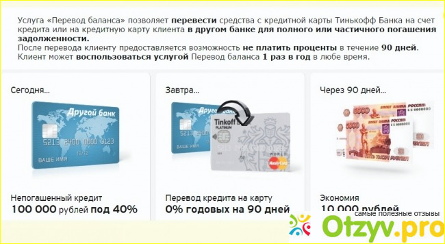 А еще есть интересная услуга - Перевод баланса. Вы можете перекрыть кредиткой Тинькоффа кредит другого банка. Переводом средств можно воспользоваться 1 раз в год! Не все это знают, но это очень удобно!!! Вы реально на 3 месяца откладываете проблему ежемесячных платежей!