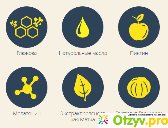 Экстракт зеленого чая Матча и витамин С. Обеспечивает активное похудение в период глубокого сна. Содержит танины, успокаивающие и повышающие количество серотонина в крови. В зеленых сортах этого чая содержится до 30% этого вещества. Оно укрепляет сосуды, притупляет чувство голода. Содержащийся же в чае кофеин запускает процесс расцепления жиров. А входящий в состав йод очень полезен для щитовидки и обмена веществ. При этом танин смягчает возбуждающее действие кофеина и поэтому компонент влияет на тело в целом успокаивающе.