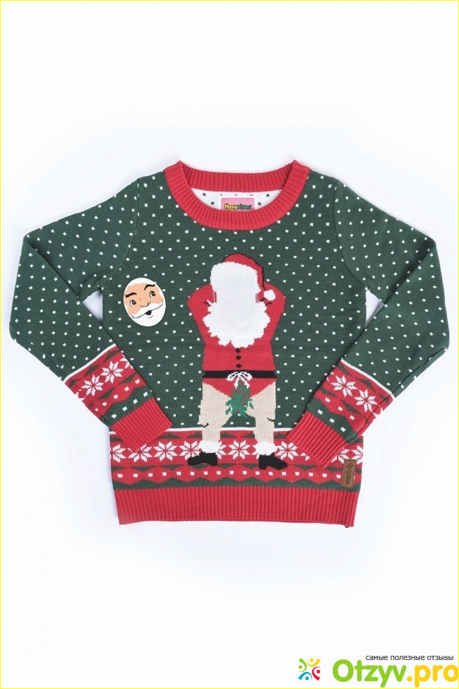 А вот второй. Здесь присутствует оригинальная задумка. На лицо Санта Клауса можно прикрепить собственную фотографию. Как по мне, очень забавная идея. Также важным плюсом является не только дизайн, но и отменное качество. Швы прочные. Хорошо стирается, не линяет. Но подлежит только ручной стирке, это указывалось в посылке. Многим моим друзьям понравился именно этот свитер.