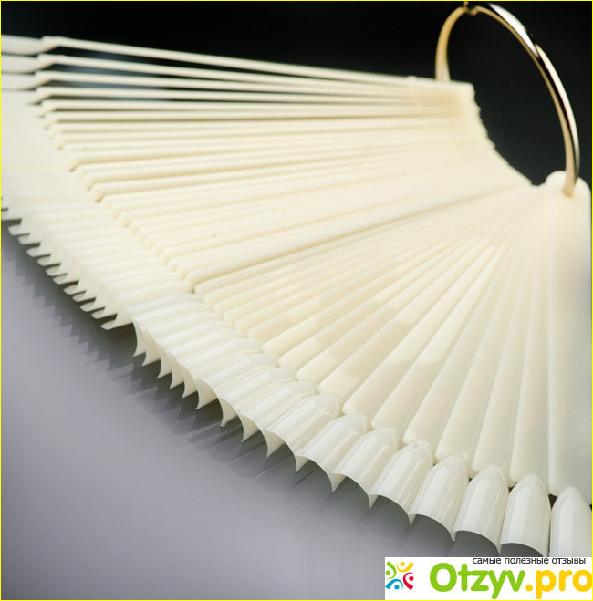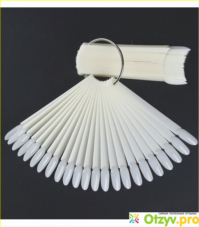 В моей практике это типсы на кольцах, в виде ноготков на палочках, которые затем надеваются на металлическое кольцо, как ключи. Эта вещь служит для того, чтобы создать образцы цветов гель-лаков которые имеются в наличии. И для того, чтобы сэкономить я приобрела типсы на Алиэкспресс. Кольцо с пятьюдесятью типсами обошлось мне всего в с 125 рублей, и самое главное, что можно снимать и надевать новые типсы по своем желанию по мере пополнения или убывания в коллекции.