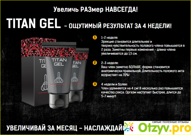 Титан-гель - это уникальное новейшее средство, применение которого поможет увеличить половой член мужчины.