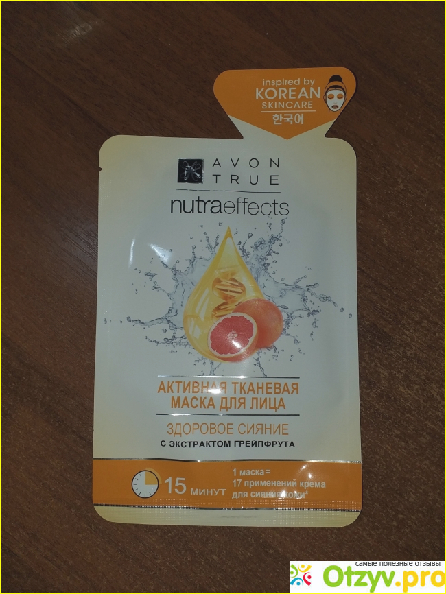Тканевая маска для лица Avon True "Здоровое сияние" с экстрактом грейпфрута, по утверждению производителя заменяет 17 применений крема для сияния кожи.