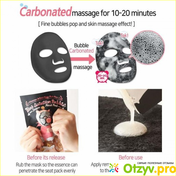 Аромат эссенции, сладкий, конфетный. Конечно понятно что химия, но в процессе ожидания довольно приятно. Пена после укладки лекала начинает образовываться быстро, становится все более густой и обильной. Время выдержки 10-15 минут. После 10 минут пенка убывает и в 15 минут ее не остается вовсе. По окончании времени, я сняла ткань, вмассировала остатки субстанции . Но, осталась противная липкость, поэтому я умылась теплой водой. получила приятный светлый оттенок, поры сузились, лицо отдохнувшее, мне очень понравилось. Я осталась довольна. Это одна из лучших версий, которыми я пользовалась. Поэтому буду рекомендовать с большим удовольствием всем ценителям корейской косметики и хороших масочек.